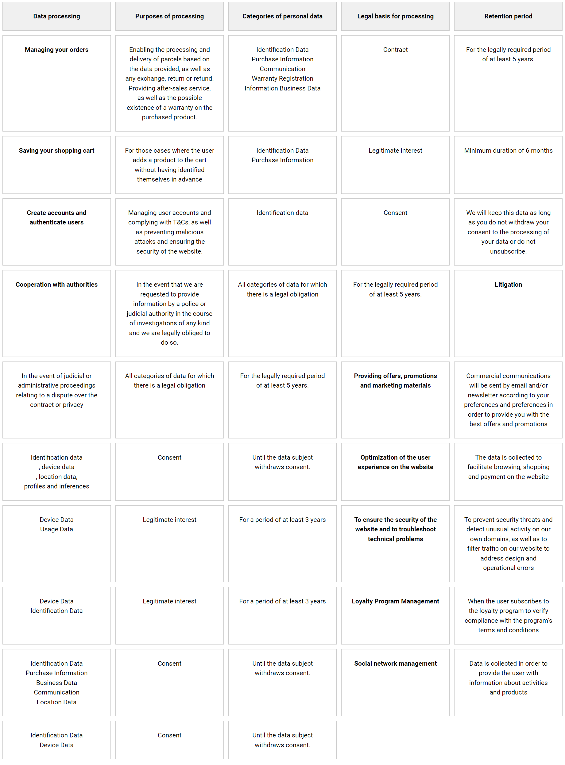 Personal data is any information that allows the data subject to be identified. Through the Website, we collect the personal data that the user voluntarily provides in the fields provided, such as name, surname, email address, telephone number, postal address, city, etc. Likewise, data made available through social networks may be collected, in which case the protection of privacy depends on the configuration as well as on the terms and conditions of the network in question. Visiting the website does not mean that the user has to provide information about their personal data. However, if it provides it, the data will be processed lawfully, subject to the principles and rights established in GDPR 2016/679 of 27 April 2016 and LOPDGDD 3/2018 of 5 December 2018.